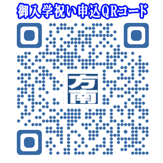 尚、QRコードからお申し込みの際は表示された画面の「入学祝」を選択 して問い合わせ欄にお名前・住所・電話番号を入力し送信してください